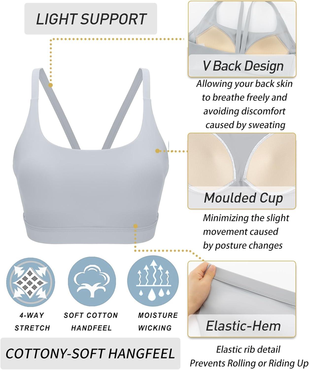 RUNNING GIRL Sports Bras for Women,Light Impact Molded Cup Strap Sports Bra with Sewn in Pads,Best for A-C Cup(Grey)