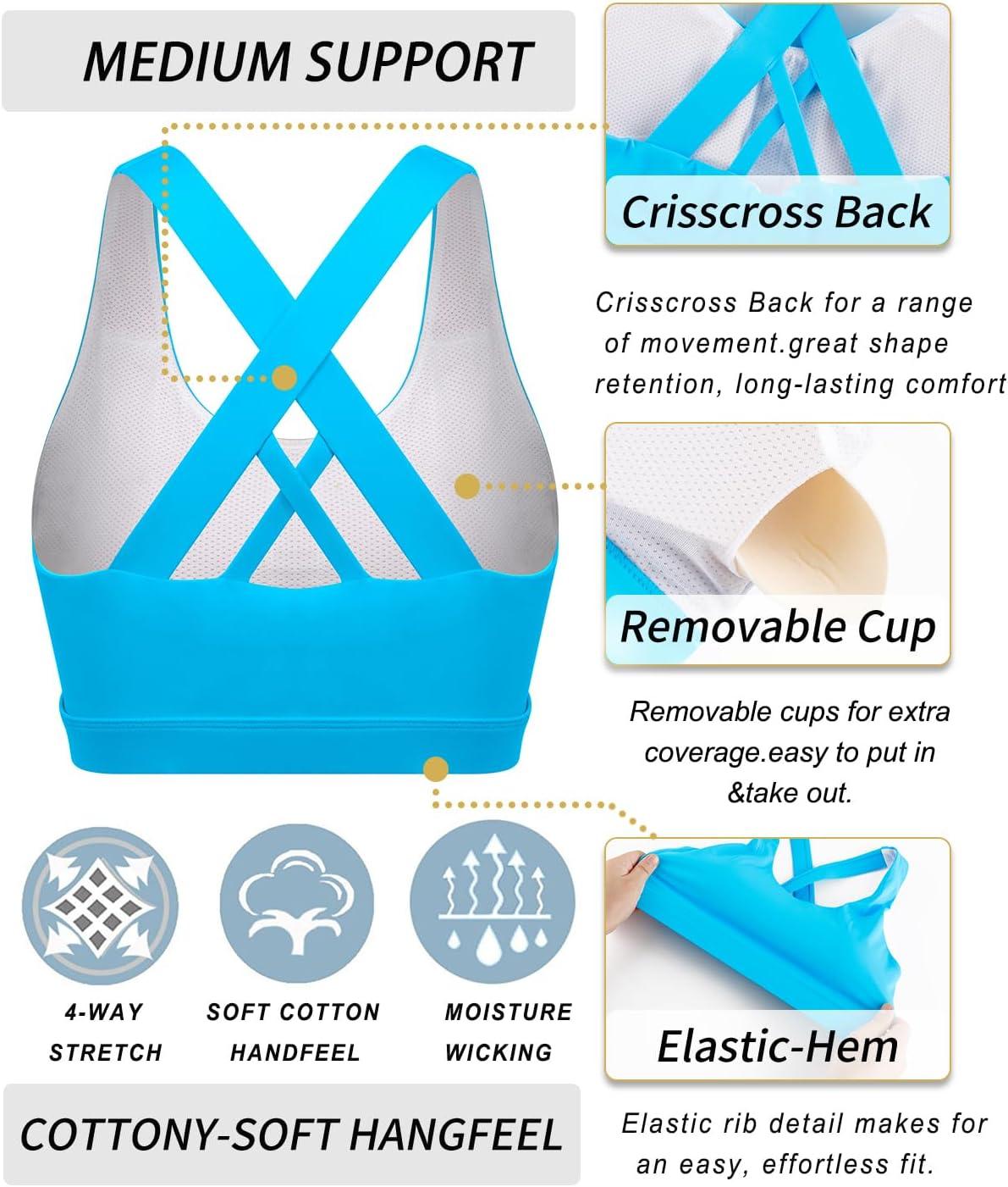 RUNNING GIRL Sports Bras for Women,Padded Strappy Sports Bras Criss-Cross Back Medium Support Sports Bras with Removable Cups(A-brilliant Blue)