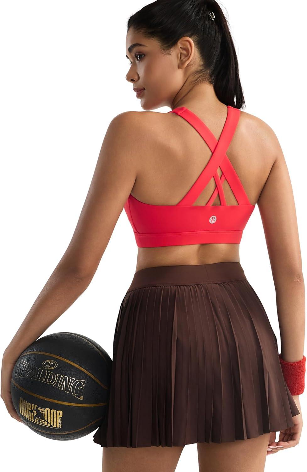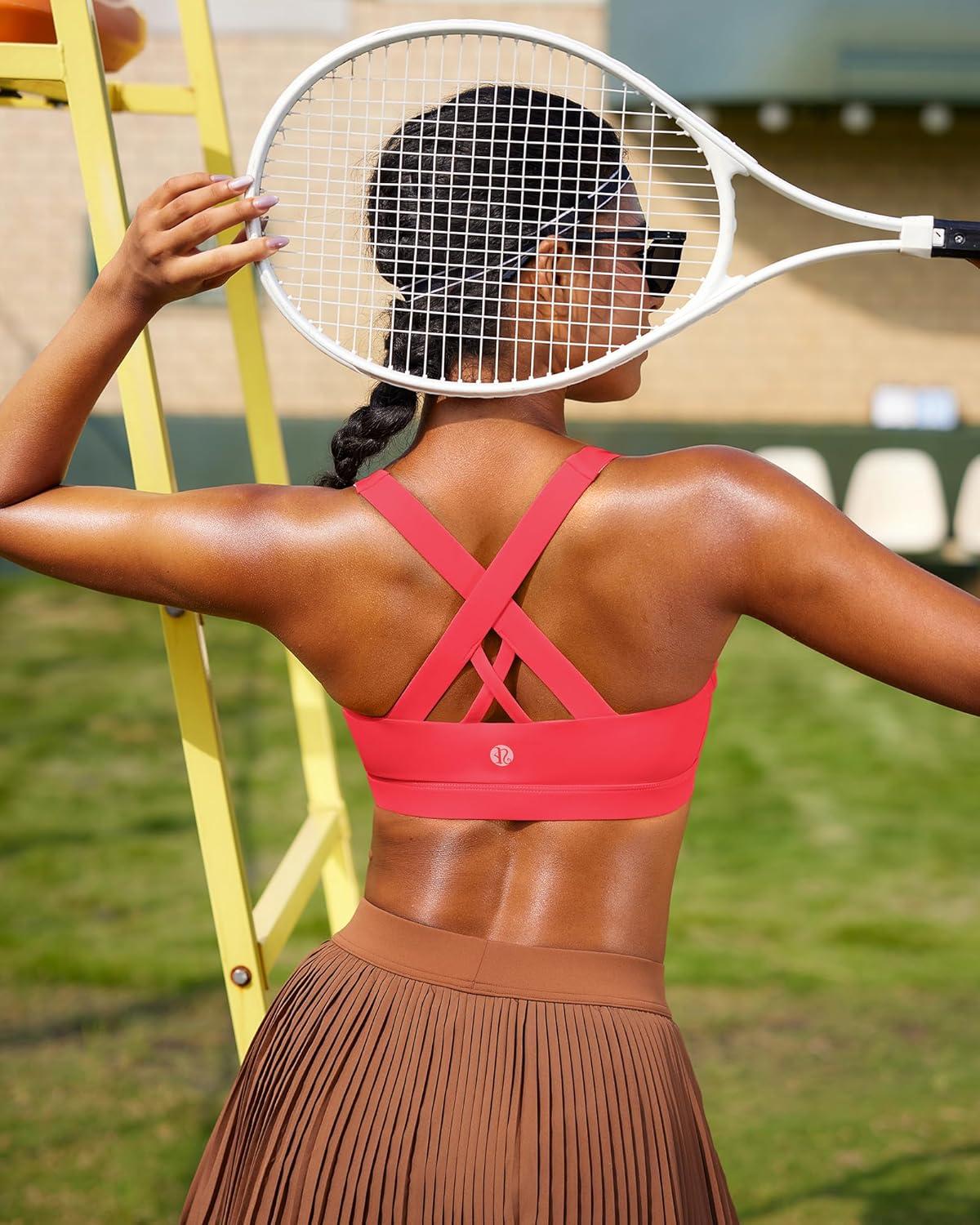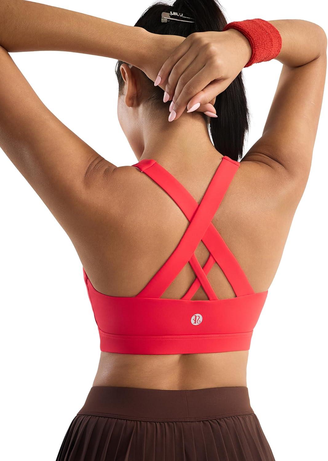 RUNNING GIRL Sports Bras for Women,Padded Strappy Sports Bras Criss-Cross Back Medium Support Sports Bras with Removable Cups(A-deep Red)