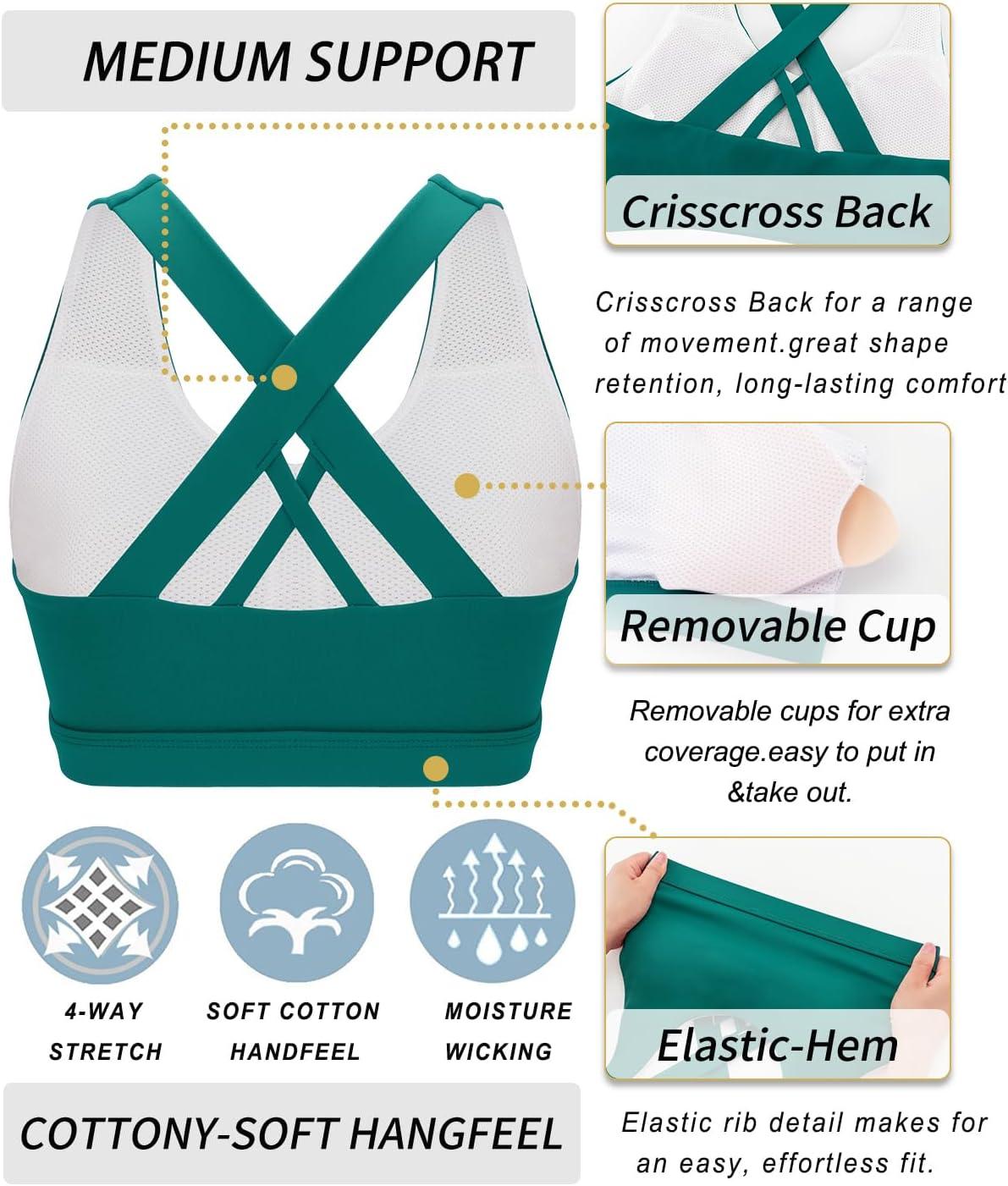 RUNNING GIRL Sports Bras for Women,Padded Strappy Sports Bras Criss-Cross Back Medium Support Sports Bras with Removable Cups(A-teal)