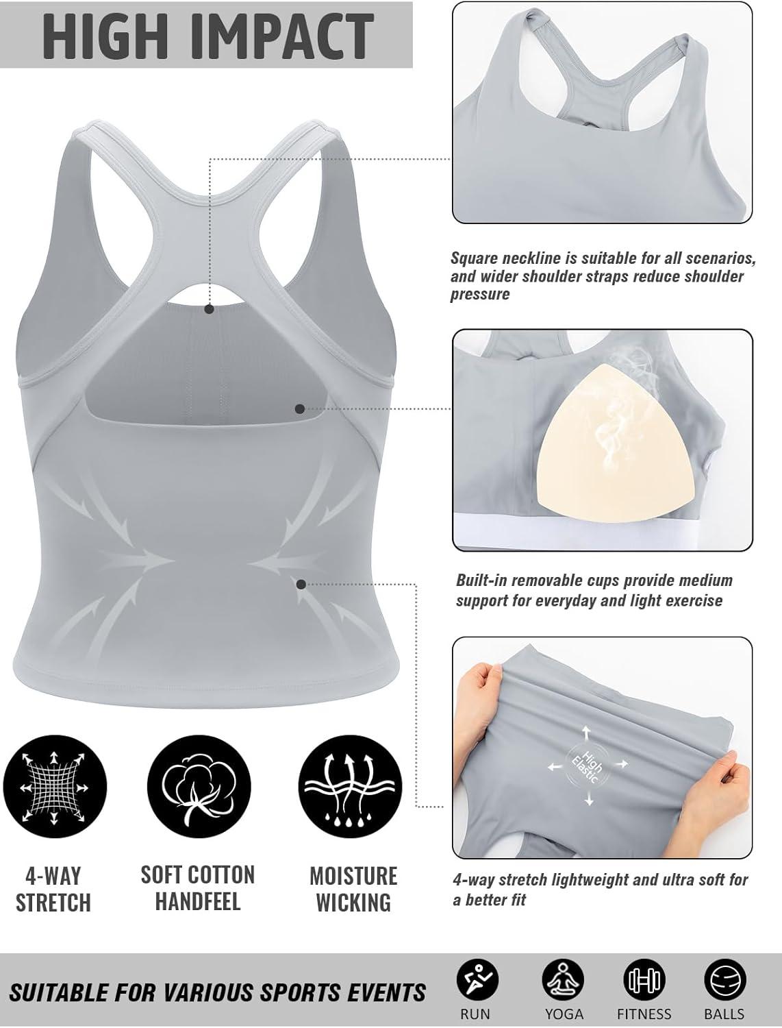 RUNNING GIRL Sports Bras for Women,Padded Strappy Sports Bras Criss-Cross Back Medium Support Sports Bras with Removable Cups(B-dusty Blue)
