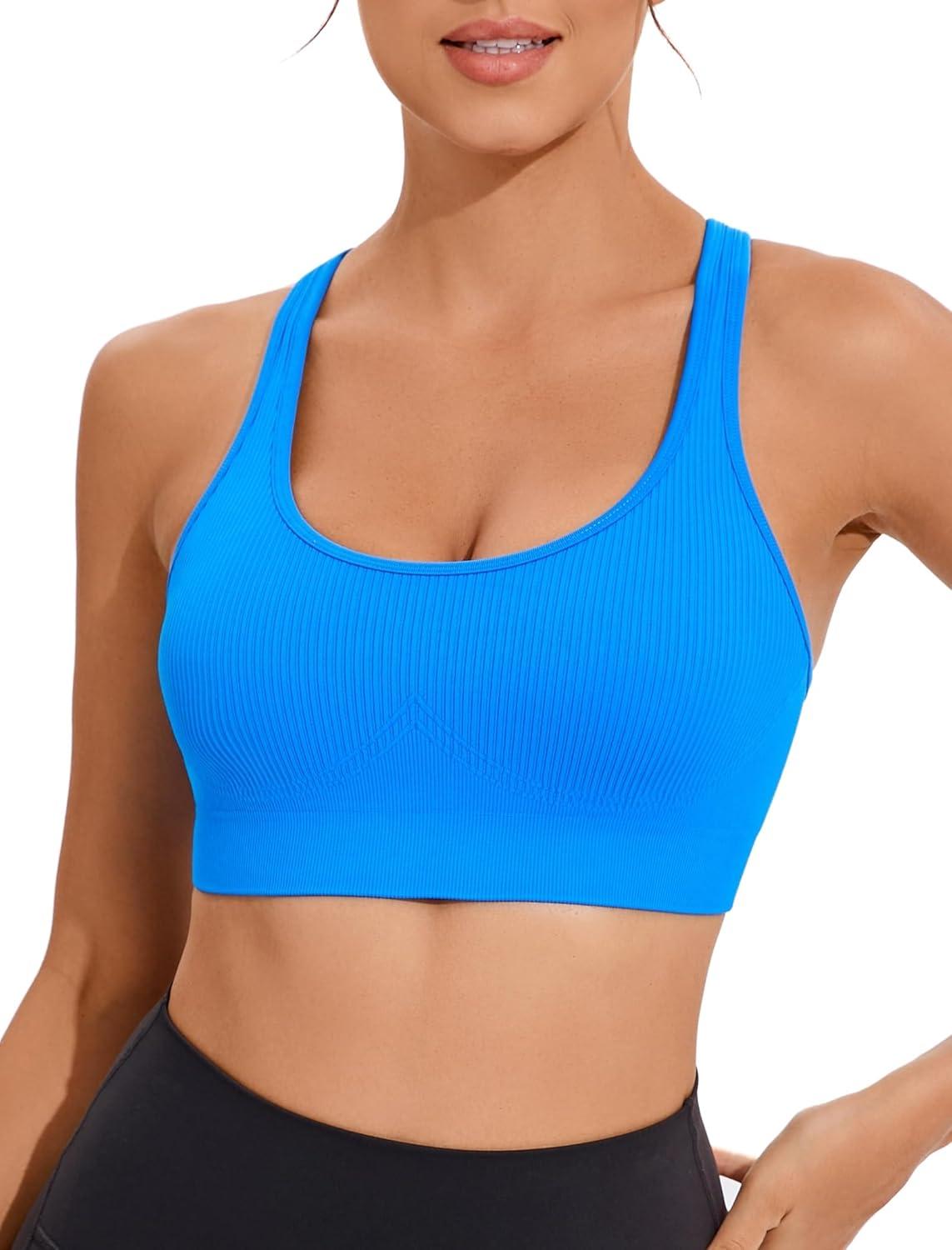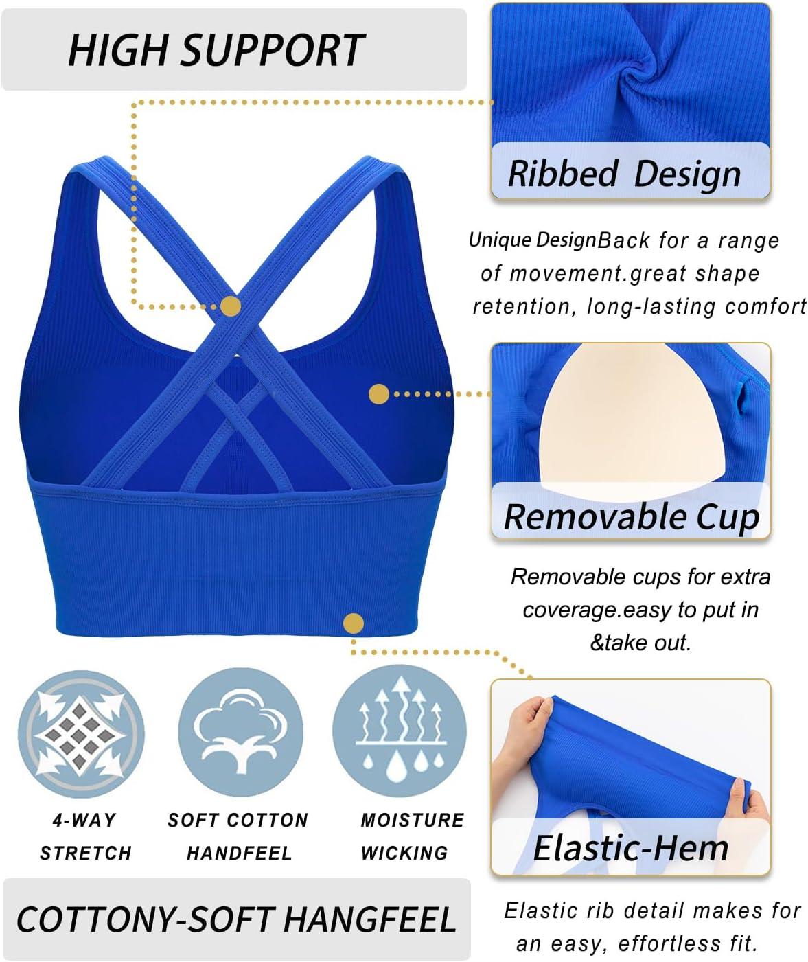 RUNNING GIRL Sports Bras for Women,Seamless Strappy Sports Bra High Support Crisscross Back with Removable Pads(B-blue)