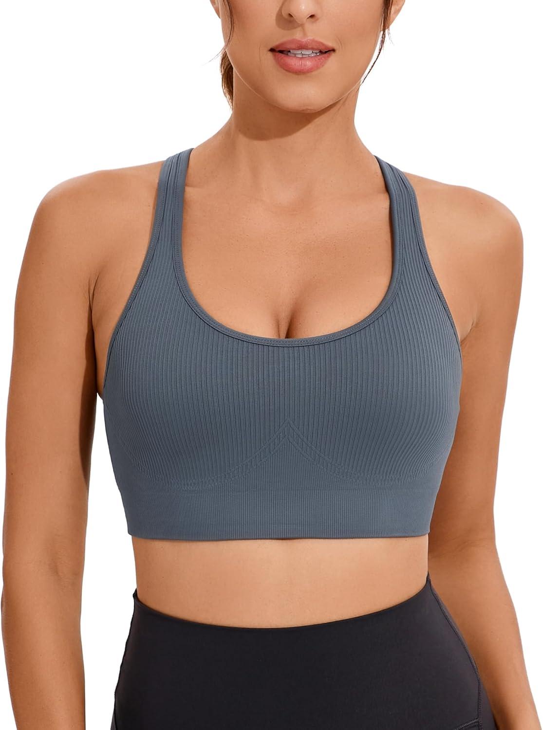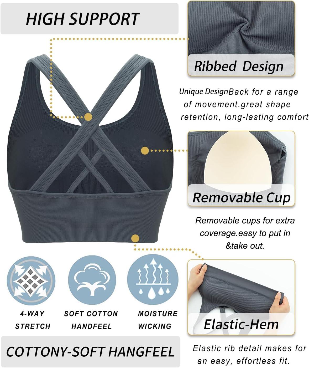 RUNNING GIRL Sports Bras for Women,Seamless Strappy Sports Bra High Support Crisscross Back with Removable Pads(B-grey)
