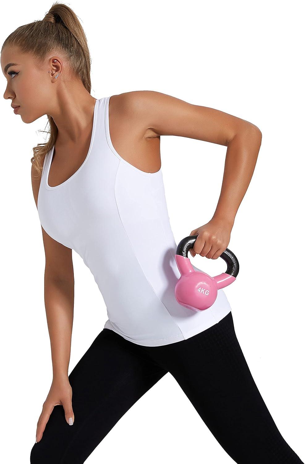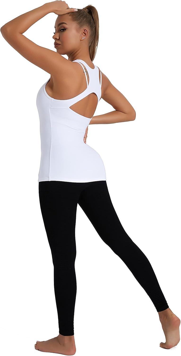 RUNNING GIRL Workout Tank Tops with Built in Bras for Women,Compression Shirt Strappy Back Athletic Yoga Tops(A-white)