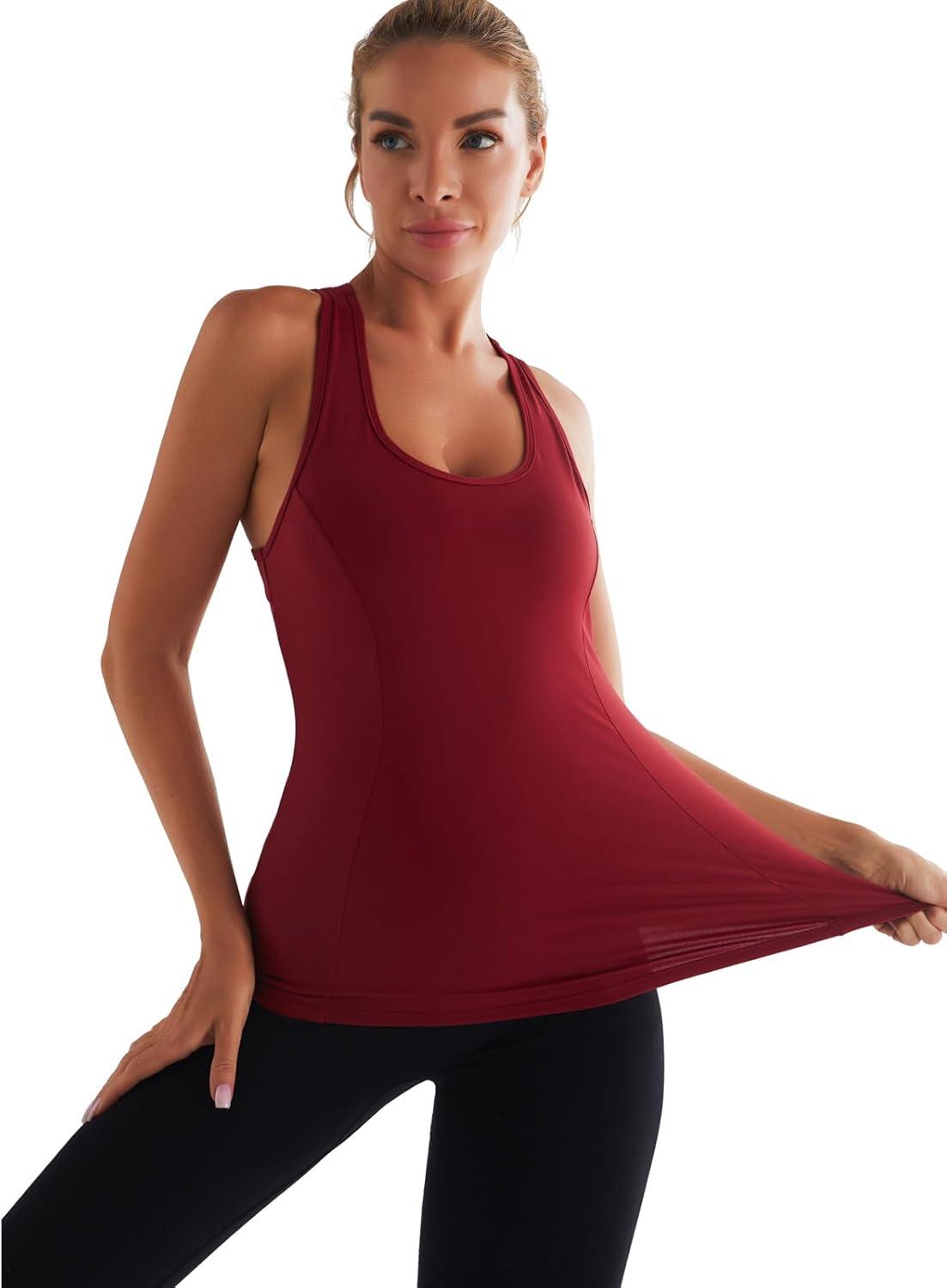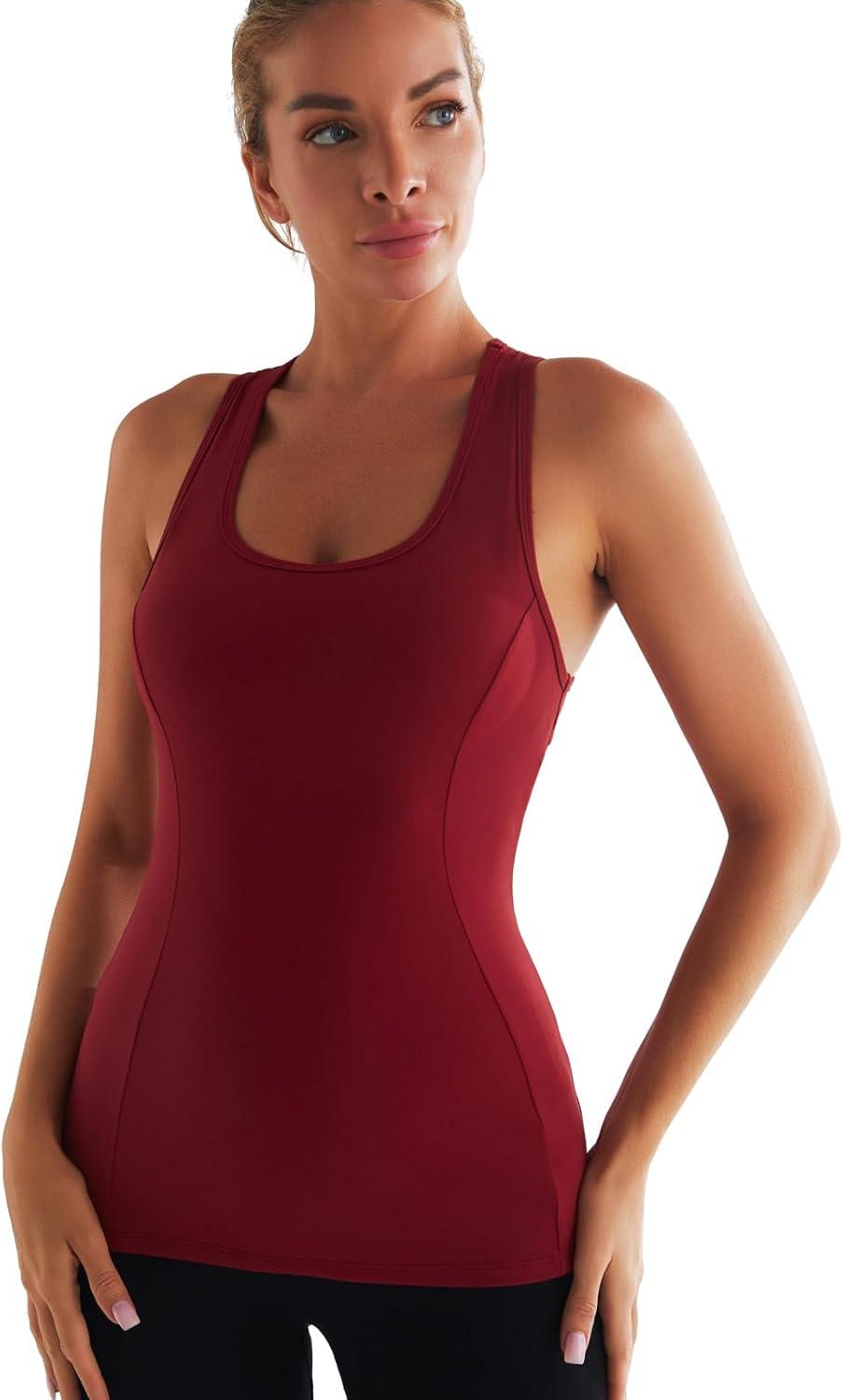 RUNNING GIRL Workout Tank Tops with Built in Bras for Women,Compression Shirt Strappy Back Athletic Yoga Tops(A-winedred)