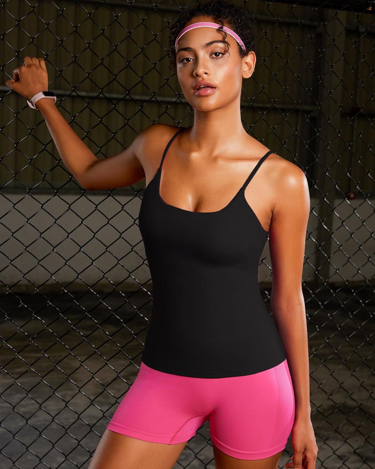 RUNNING GIRL Workout Tank Tops with Built in Bras for Women,Compression Shirt Strappy Back Athletic Yoga Tops(Y-black)