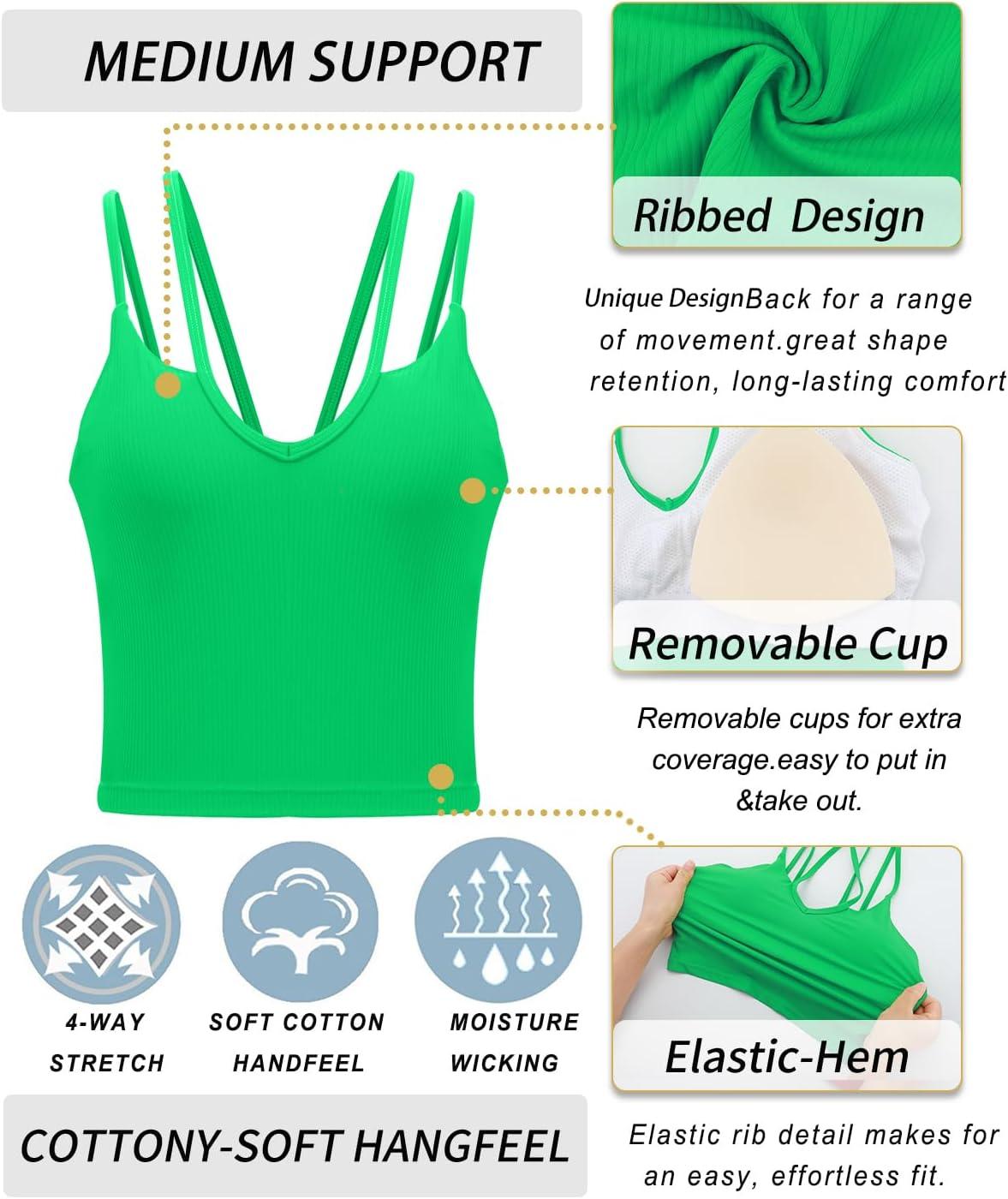 RUNNING GIRL Workout Tank Tops with Built in Bras for Women,Criss-Cross Back Medium Support Sports Bras for Women(1-green)