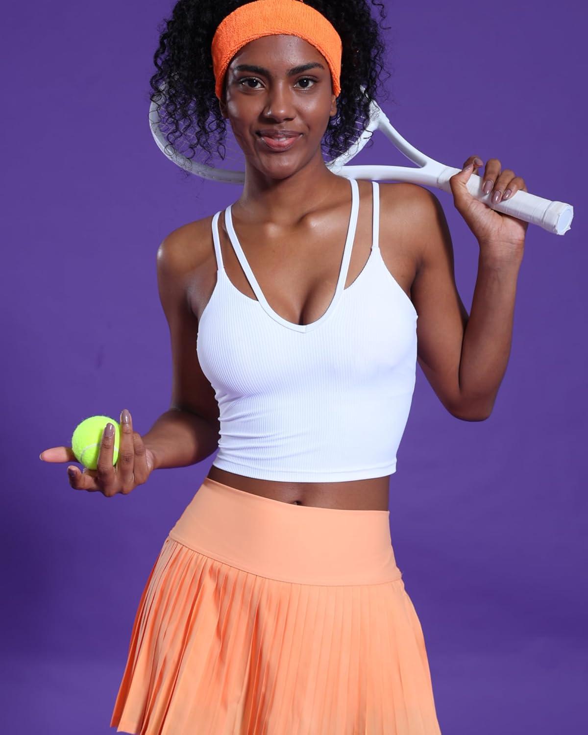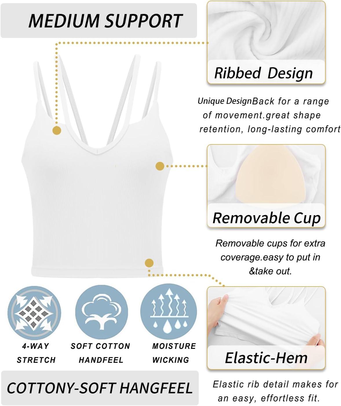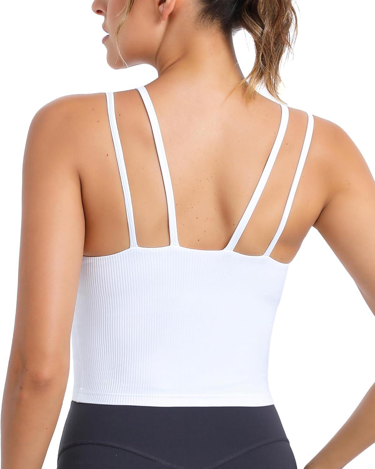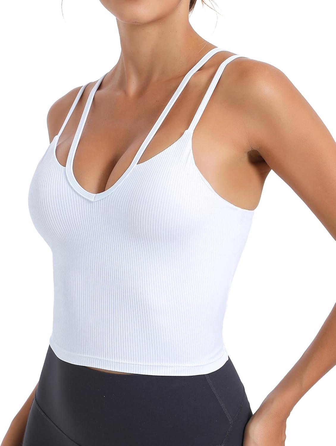 RUNNING GIRL Workout Tank Tops with Built in Bras for Women,Criss-Cross Back Medium Support Sports Bras for Women(1-white)