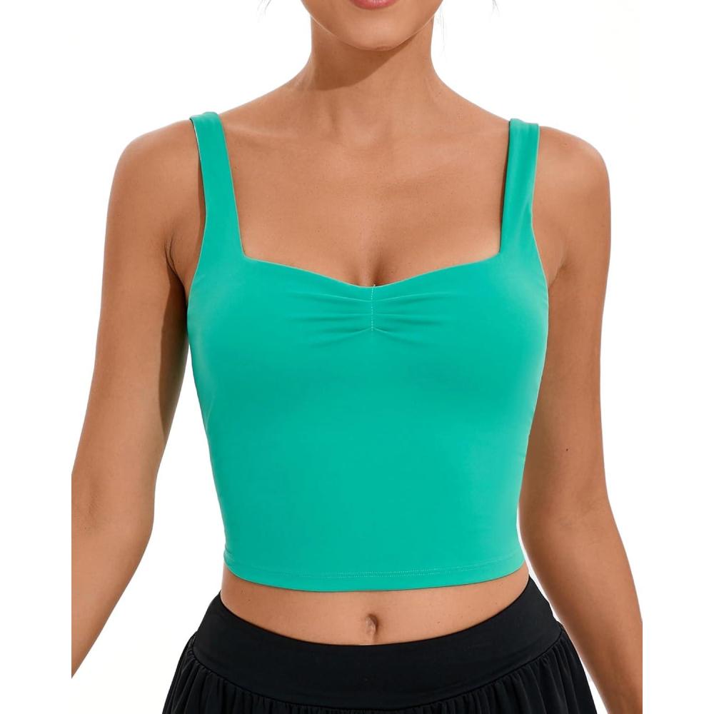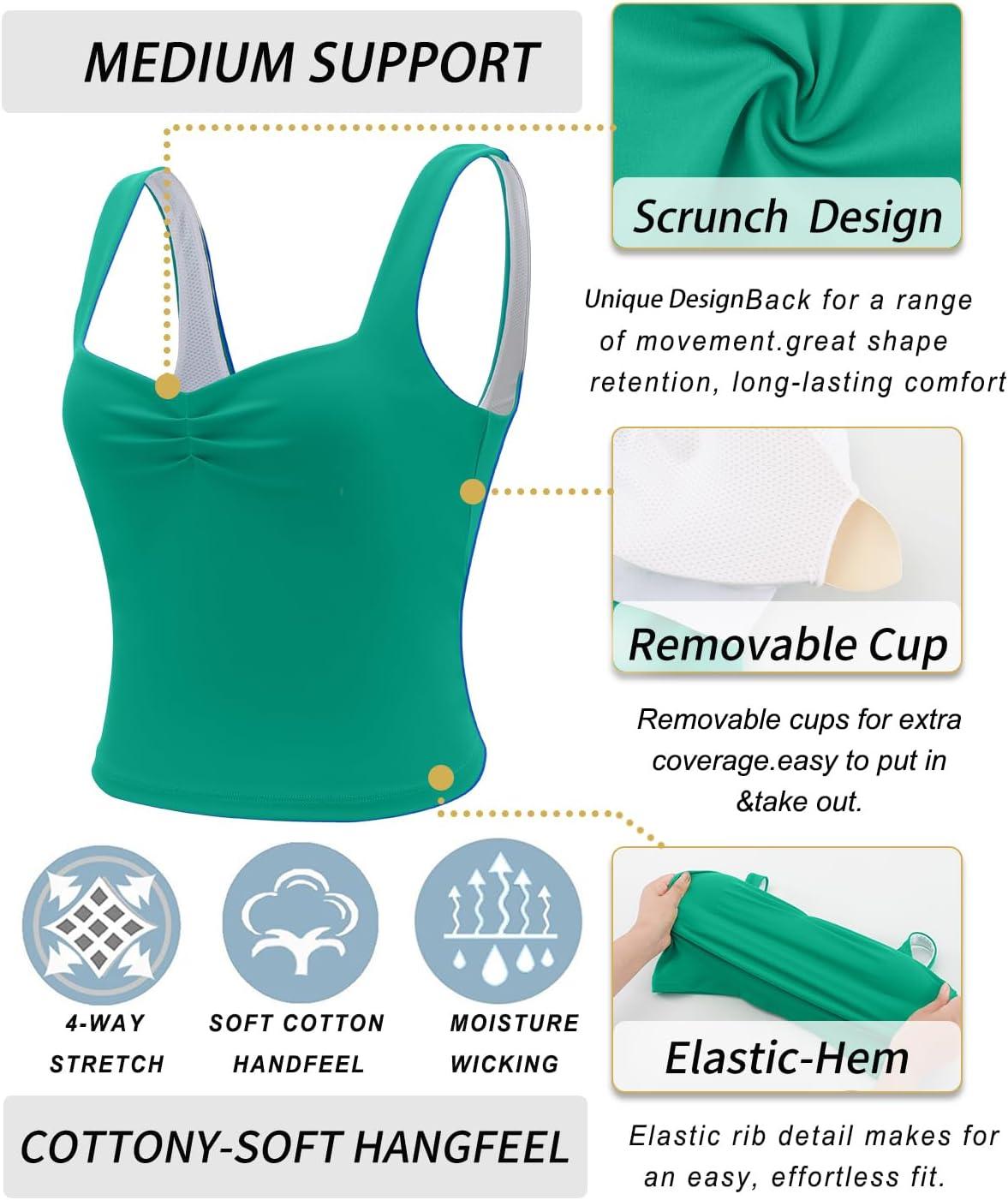 RUNNING GIRL Workout Tank Tops with Built in Bras for Women,Criss-Cross Back Medium Support Sports Bras for Women(2-green)