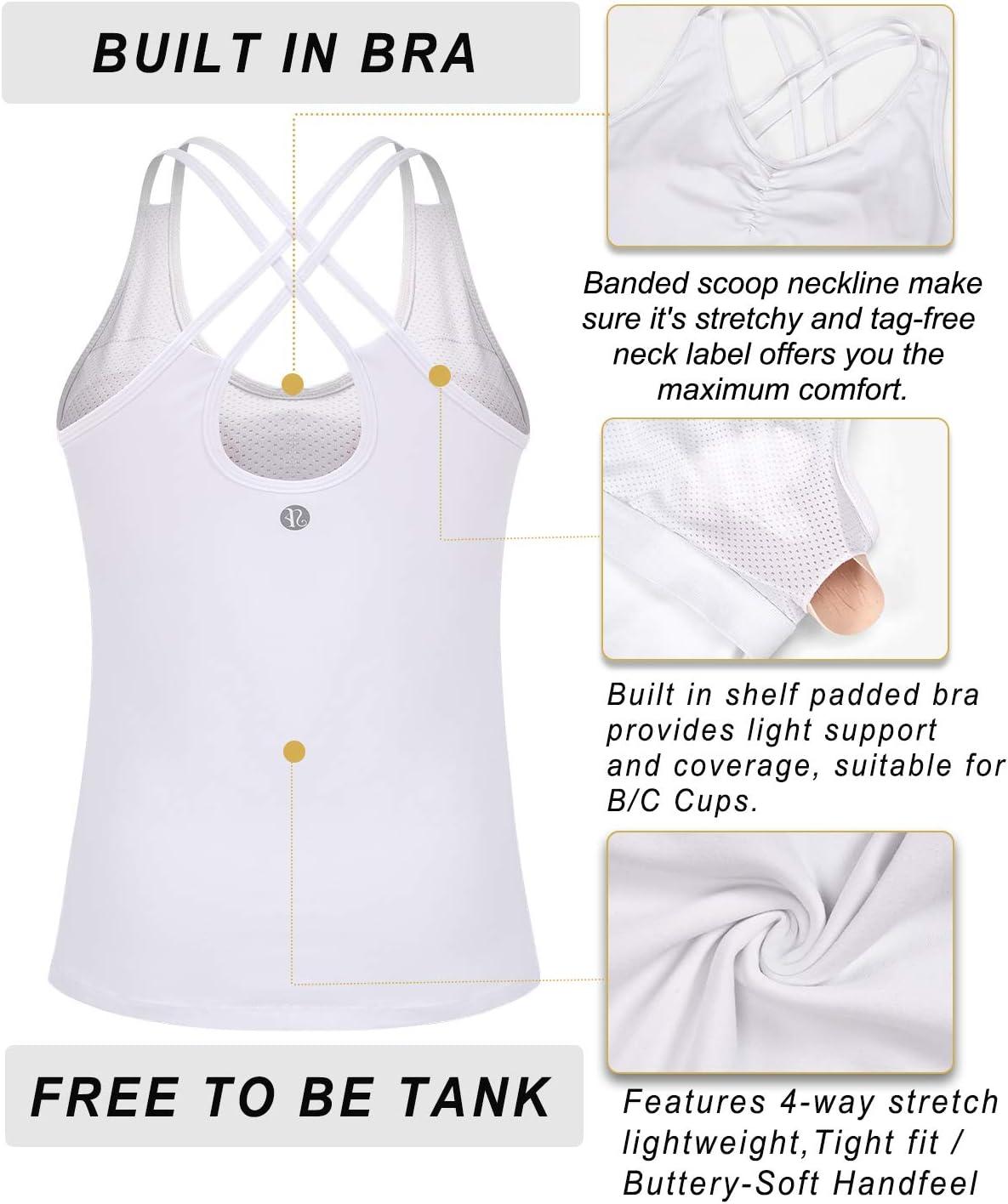 RUNNING GIRL Yoga Tank Tops for Women Built in Shelf Bra B/C Cups Strappy Back Activewear Workout Compression Tops(D-white)