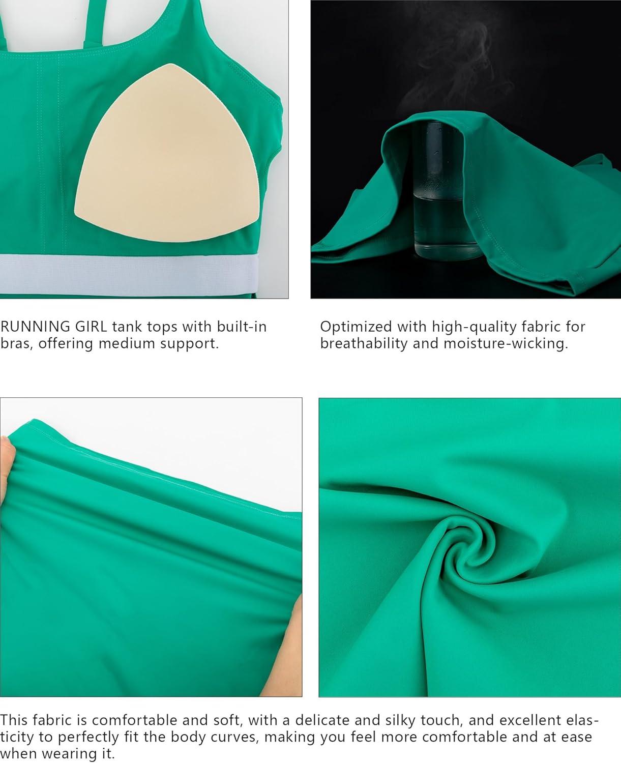 RUNNING GIRL Yoga Tank Tops for Women Built in Shelf Bra B/C Cups Strappy Back Activewear Workout Compression Tops(W-bright Green)