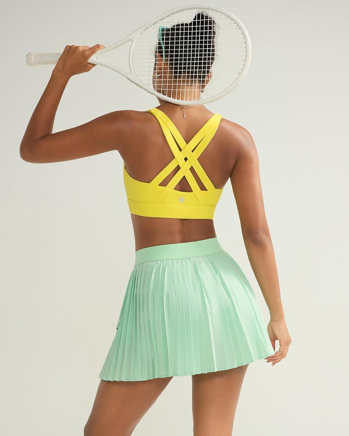 RUNNING GIRL Sports Bra for Women High Support,Molded Cup Strappy Running Sports Bras with Sewn in Pads(Bright Green)