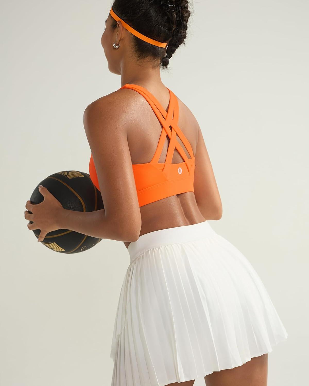 RUNNING GIRL Sports Bra for Women High Support,Molded Cup Strappy Running High Impact Sports Bras for Women(Orange)
